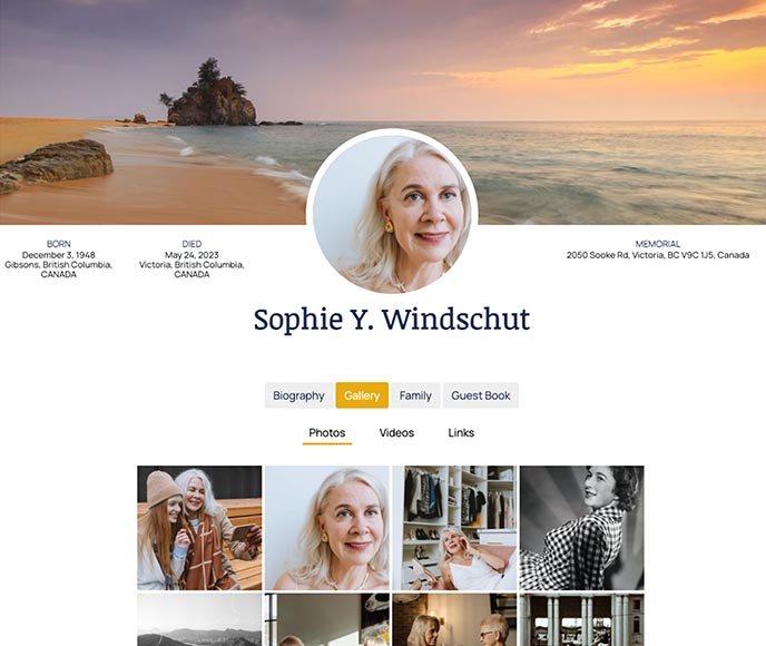 Al recibir su placa, escanee el código QR con su teléfono inteligente y siga al asistente fácil de usar para crear una cuenta e iniciar la personalización de su página conmemorativa. Incorpore una biografía, fotos, videos, un árbol genealógico y más para personalizar la página a su gusto.
